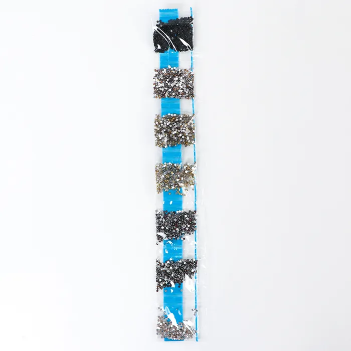 Разложите кристаллики с помощью карандаша по указанной схеме, заполнив полотно. Тканевая основа с точечным клеевым покрытием будет надёжно удерживать стразы. На картине уже обозначены необходимые оттенки.