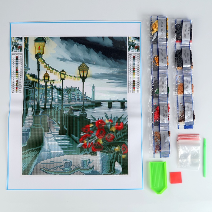 Алмазная мозаика с частичным заполнением на холсте «Набережная», 30 х 40 см — Характеристики