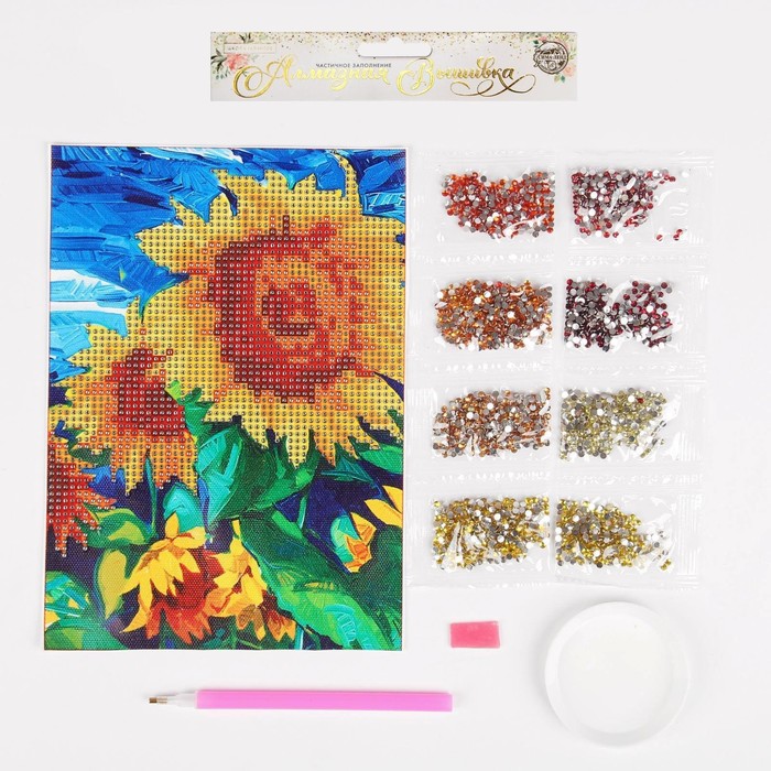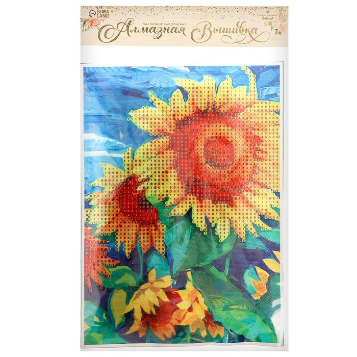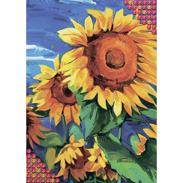 Алмазная мозаика с частичным заполнением на холсте «Подсолнухи», 15 х 21 см — Характеристики
