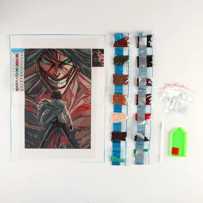Разложите стразы с помощью карандаша по указанной схеме, заполнив полотно. Тканевая основа с точечным клеевым покрытием будет надёжно удерживать стразы. На картине уже обозначены необходимые оттенки, а цветовая таблица расположена рядом с рабочей областью холста.