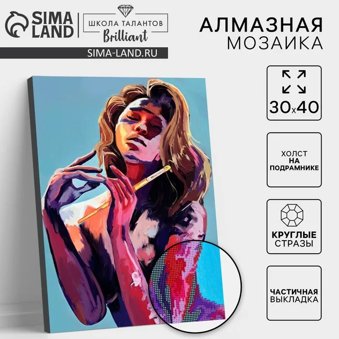 Алмазная мозаика с частичным заполнением на подрамнике «Девушка в красках», 30 х 40 см — Характеристики