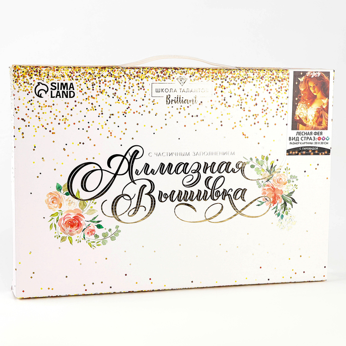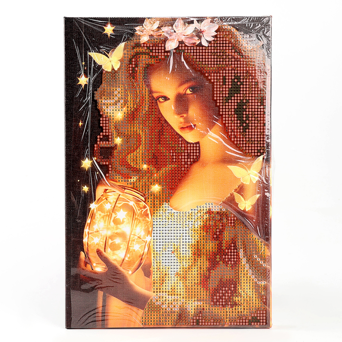 Алмазная мозаика с частичным заполнением на подрамнике «Лесная фея», 20 х 30 см, с гирляндой — Характеристики