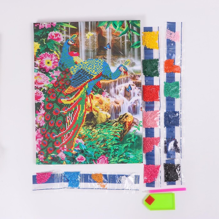 Алмазная мозаика с частичным заполнением на подрамнике «Павлины», 30 x 40 см — Характеристики