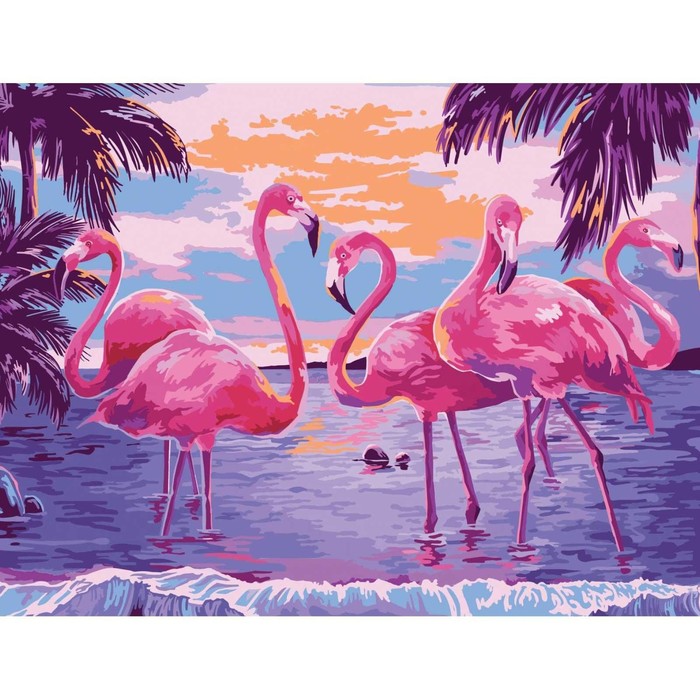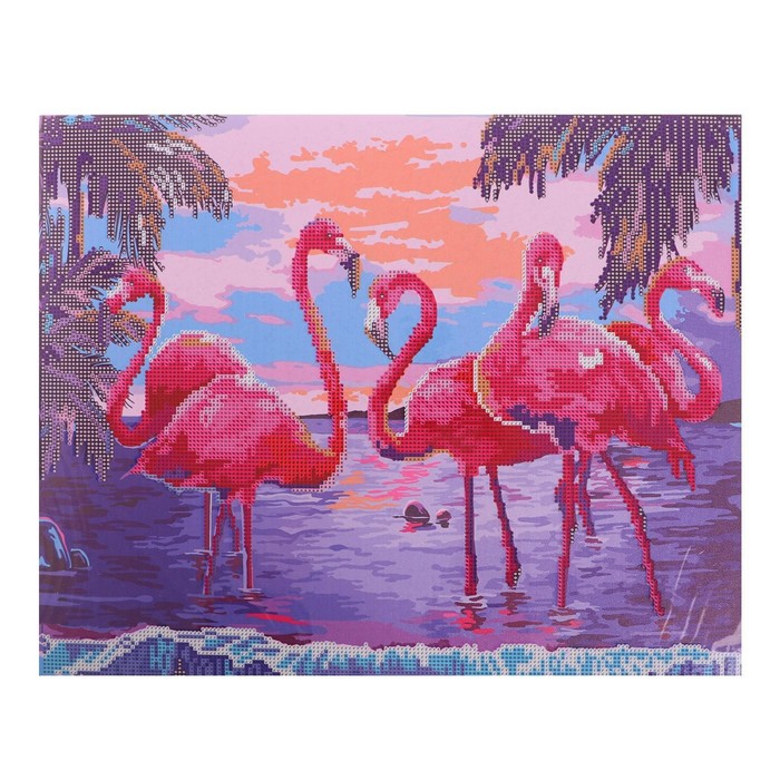 Алмазная мозаика с частичным заполнением на подрамнике «Розовые фламинго», 40 х 50 см — Характеристики