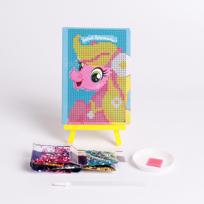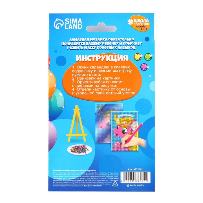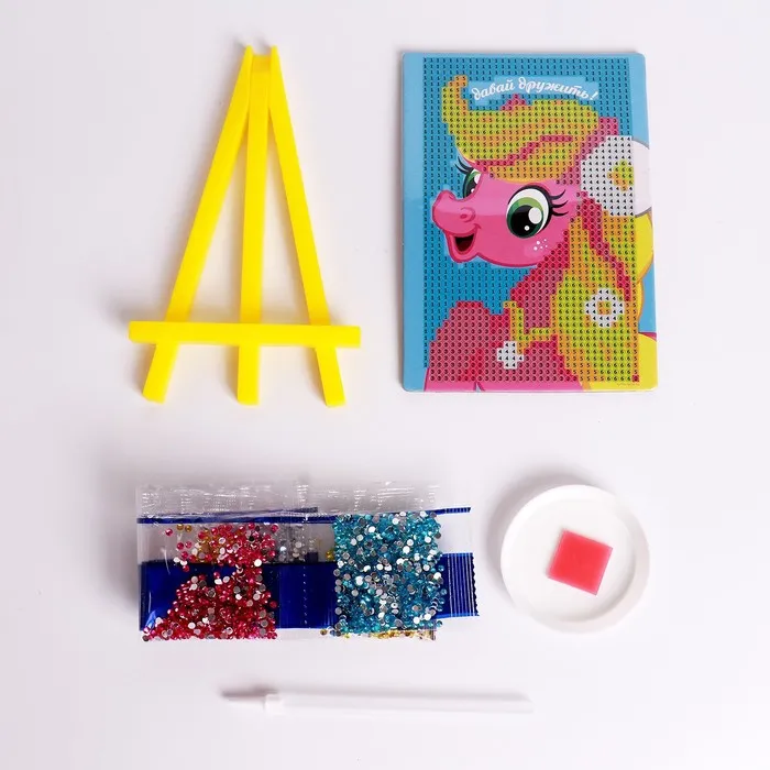 Алмазная мозаика с частичным заполнением на подставке для детей «Давай дружить», 10 х 15 см — Характеристики