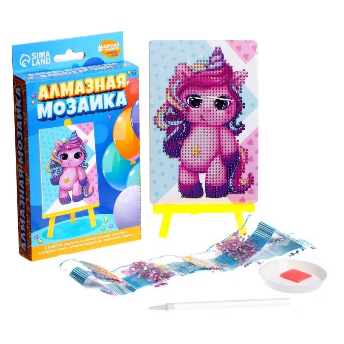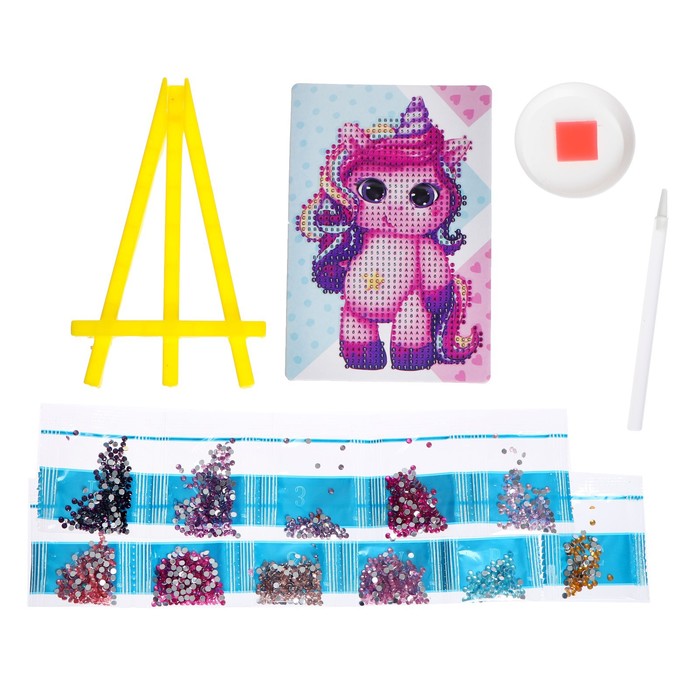 Алмазная мозаика с частичным заполнением на подставке для детей «Единорожка», 10 х 15 см — Характеристики