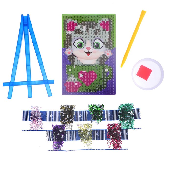 Алмазная мозаика с частичным заполнением на подставке для детей «Котик», 10 х 15 см — Характеристики