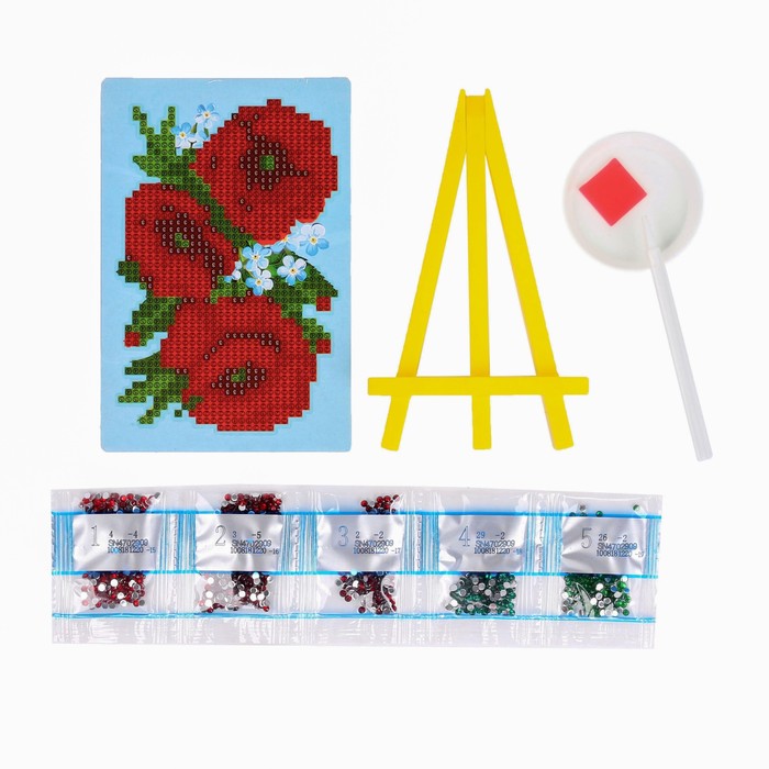 Алмазная мозаика с частичным заполнением на подставке для детей «Маки», 10 х 15 см — Характеристики