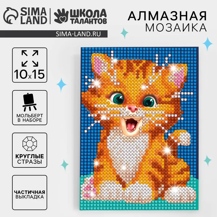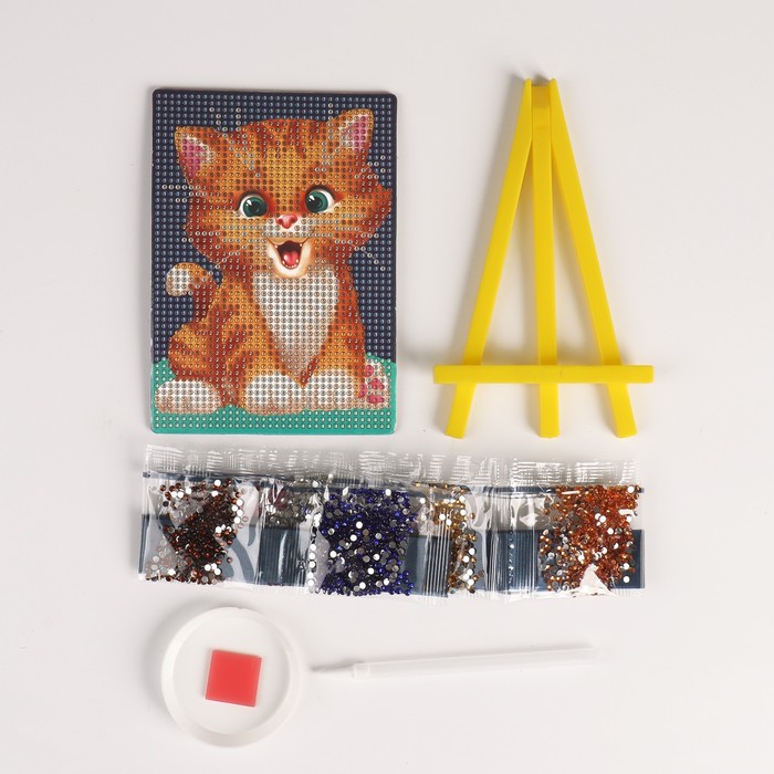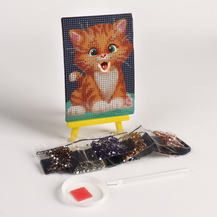 Алмазная мозаика с частичным заполнением на подставке для детей «Милый котик», 10 х 15 см — Характеристики