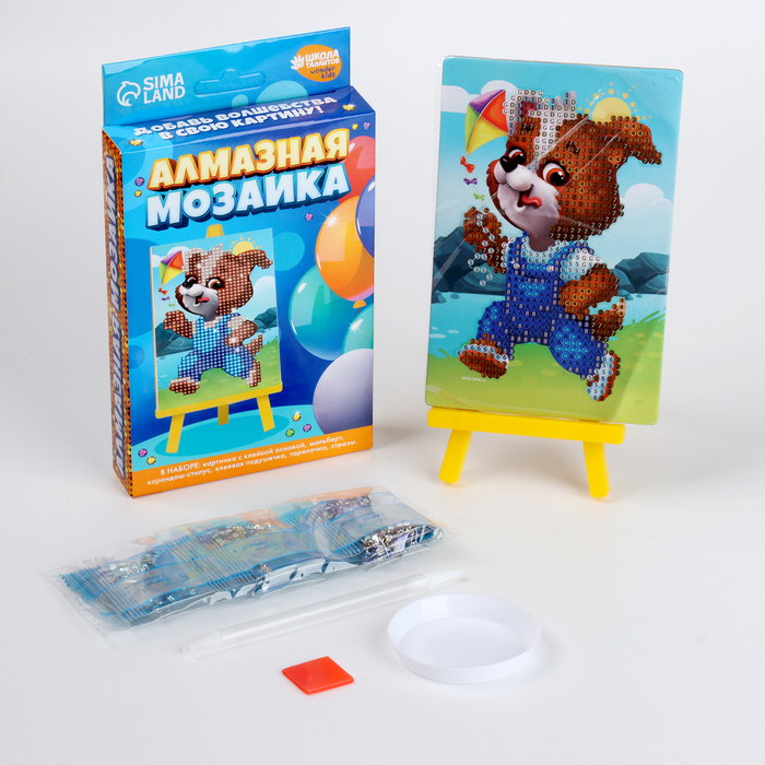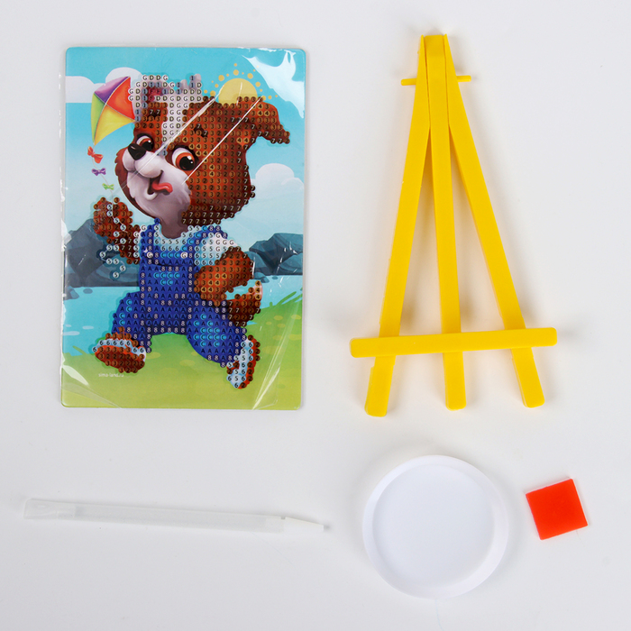 Алмазная мозаика с частичным заполнением на подставке для детей «Щенок с воздушным змеем», 10 х 15 см — Характеристики