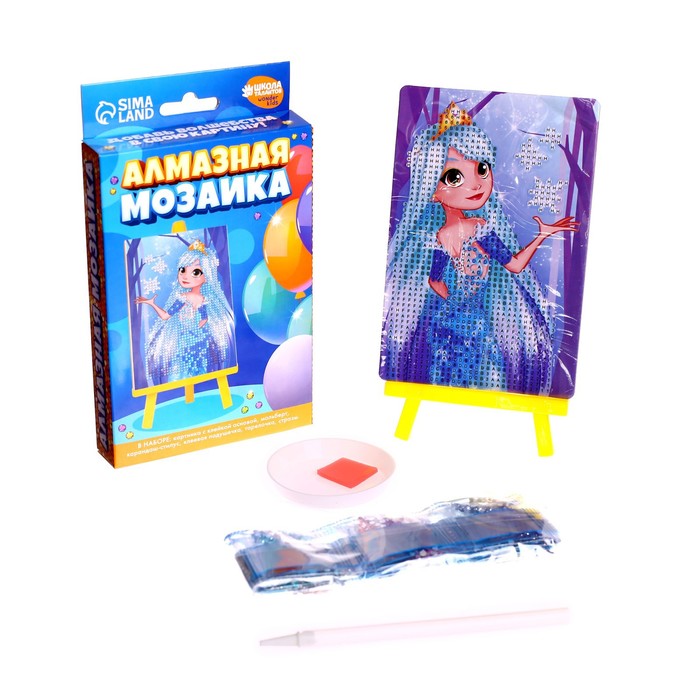 Алмазная мозаика с частичным заполнением на подставке для детей «Снежная принцесса», 10 х 15 см — Характеристики
