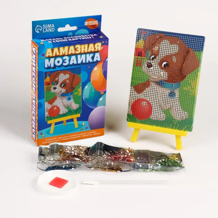 Алмазная мозаика с частичным заполнением на подставке для детей «Весёлая собачка» — Характеристики