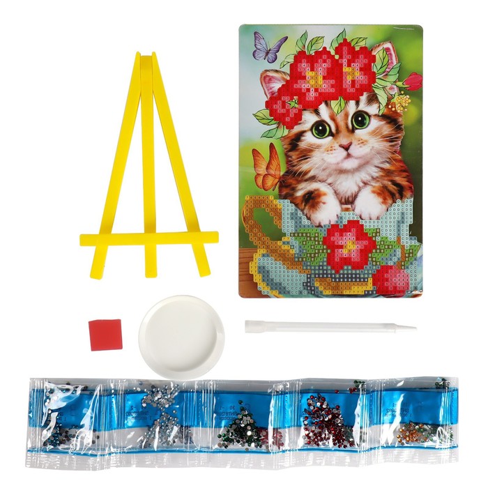В данном наборе есть небольшой мольберт, с ним готовое творение можно удобно расположить на полке или столе без дополнительных креплений.