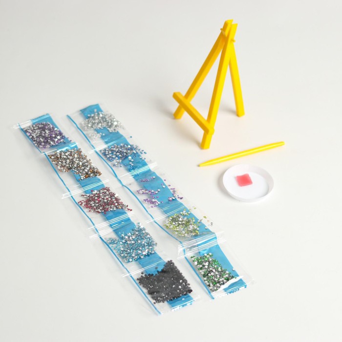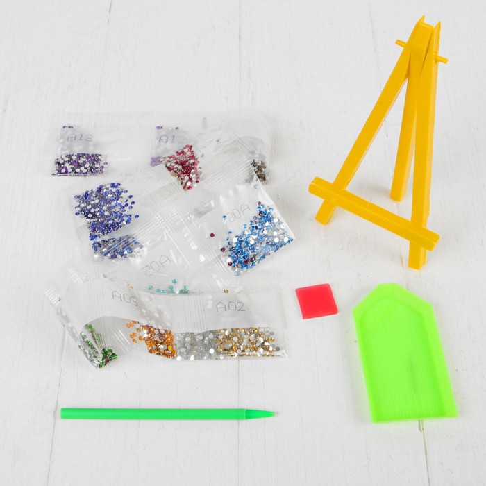 В данном наборе есть небольшой мольберт, с ним готовое творение можно удобно расположить на полке или столе без дополнительных креплений.