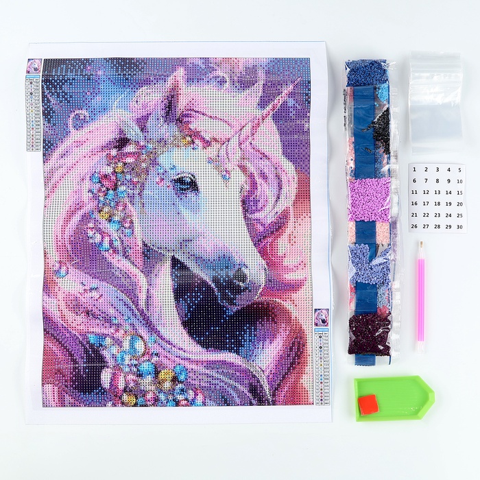 Алмазная мозаика с полным заполнением на холсте «Драгоценный единорог», 30×40 см — Характеристики