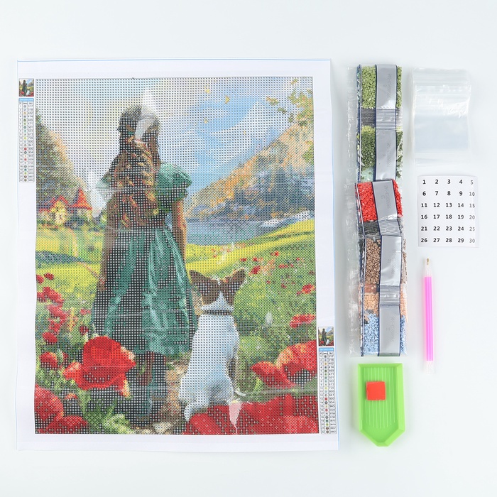Вам предстоит разложить кристаллики карандашом по пронумерованной схеме. Холст с клеевым покрытием будет надёжно удерживать стразы.