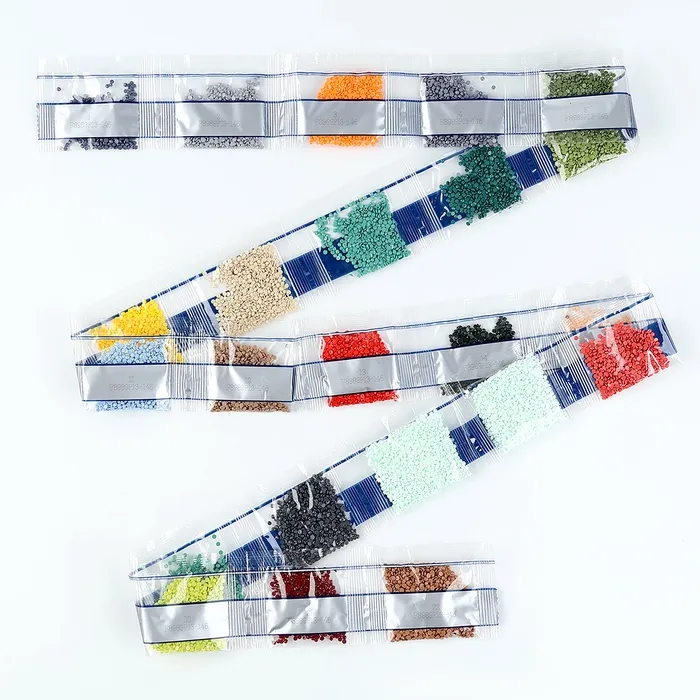 - Из пакетика с номером, который соответствует схеме, отсыпьте в ёмкость немного страз.