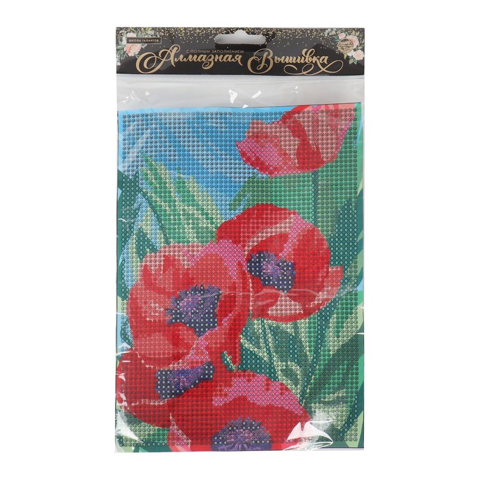Алмазная мозаика с полным заполнением на холсте «Маки», 15 х 21 см — Характеристики