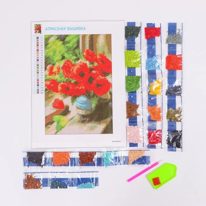 Алмазная мозаика с полным заполнением на холсте «Маки», 20 х 30 см — Характеристики