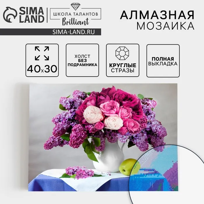 Алмазная мозаика с полным заполнением на холсте «Натюрморт», 30 х 40 см — Характеристики