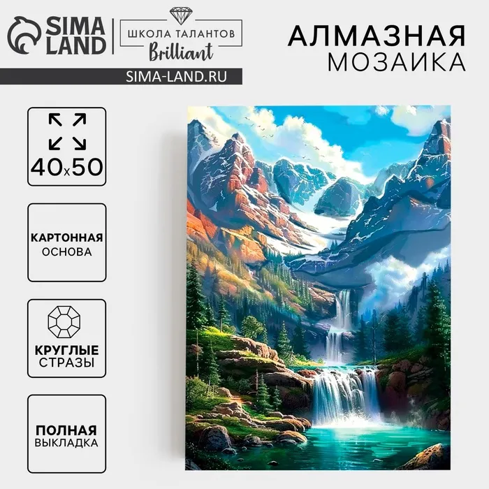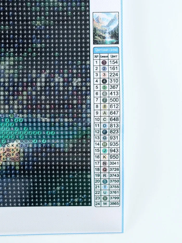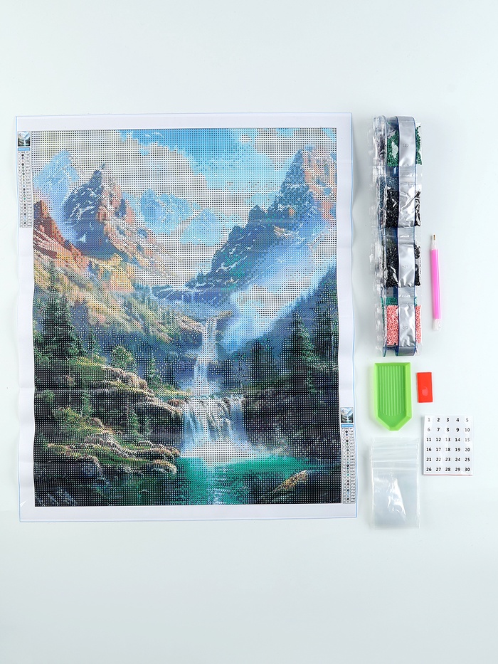 Алмазная мозаика с полным заполнением на холсте «Озеро в горах», 40 х 50 см — Характеристики