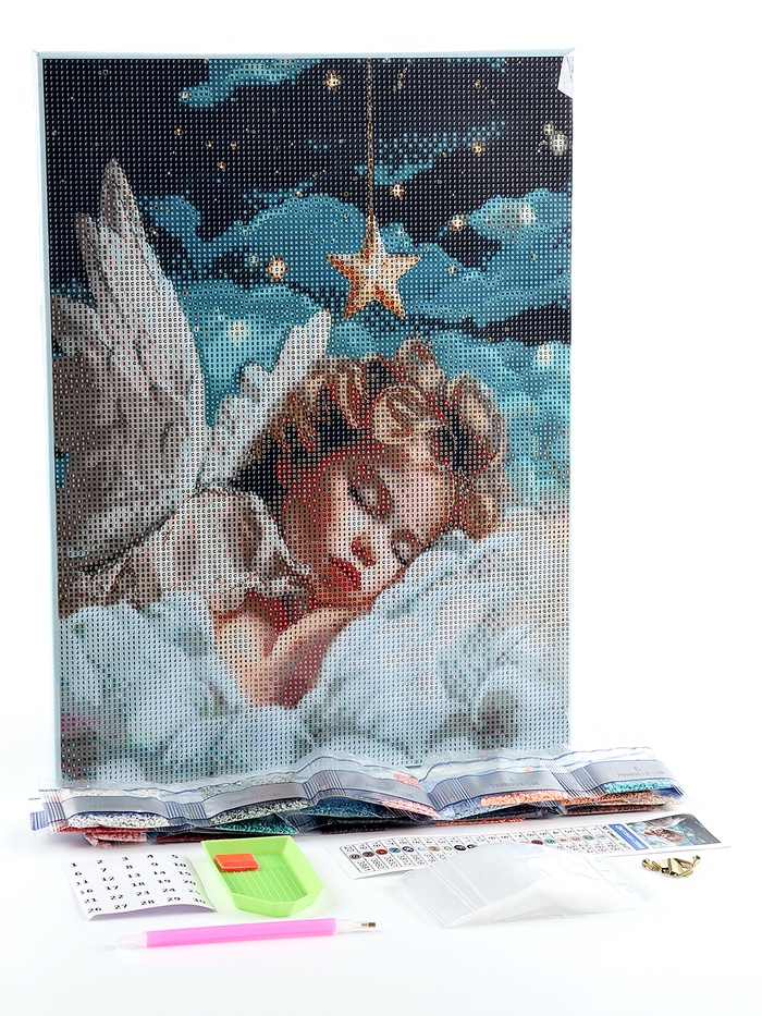 Алмазная мозаика с полным заполнением на холсте с подрамником «Ангел», 30 х 40 см — Характеристики