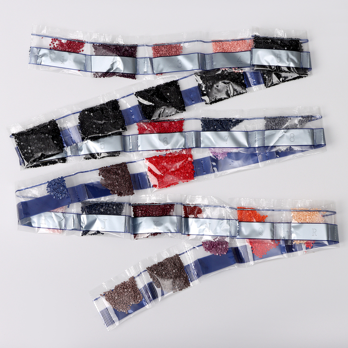 Вам предстоит разложить кристаллики карандашом по пронумерованной схеме. Холст с клеевым покрытием будет надёжно удерживать стразы.