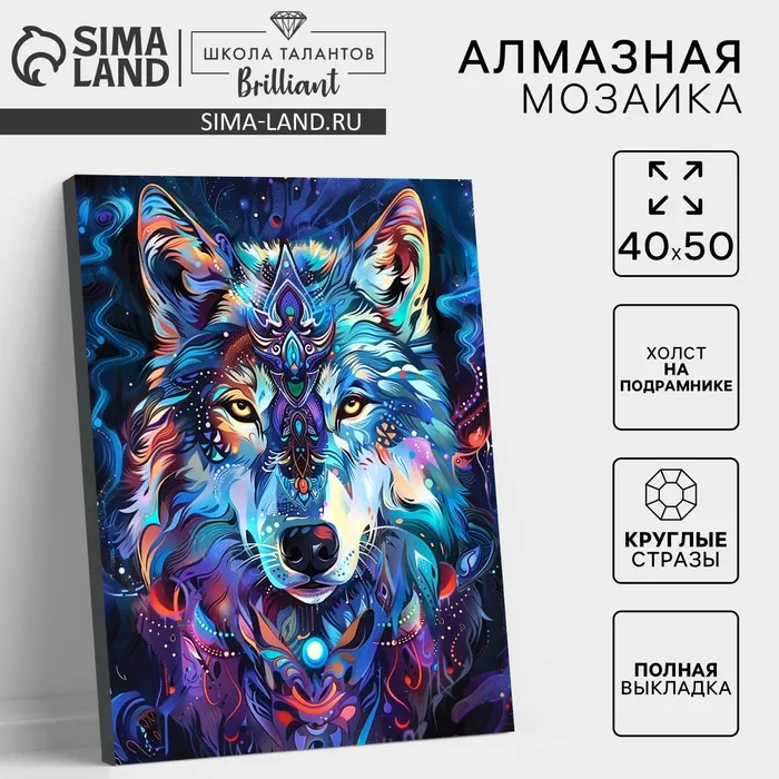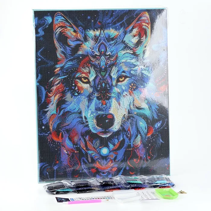 Алмазная мозаика с полным заполнением на холсте с подрамником «Лунный волк», 40 х 50 см — Характеристики