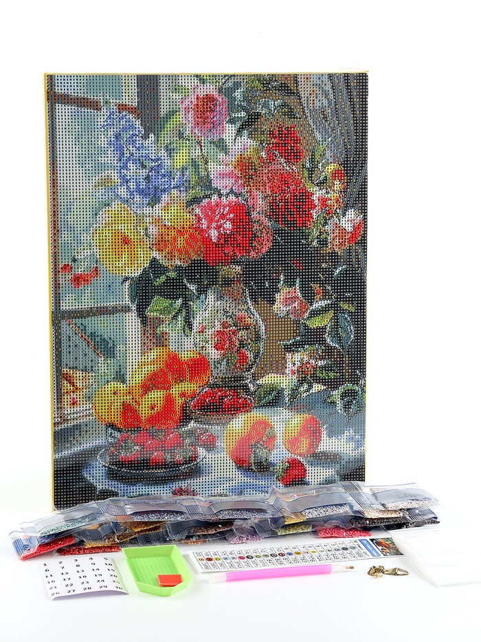 Алмазная мозаика с полным заполнением на холсте с подрамником «Натюрморт», 30×40 см — Характеристики