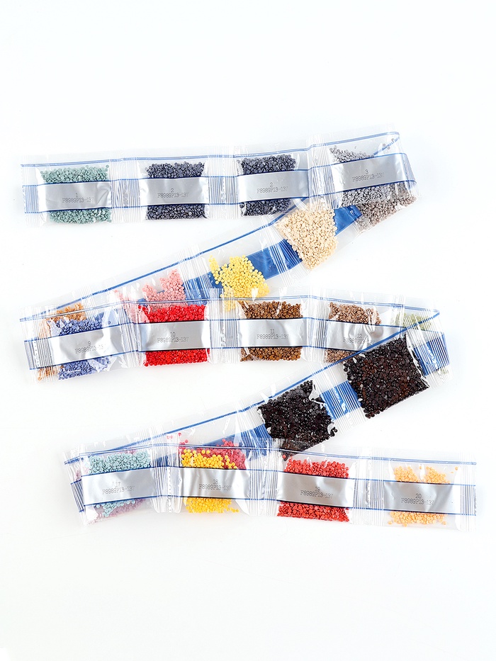 Вам предстоит разложить кристаллики карандашом по пронумерованной схеме. Холст с клеевым покрытием будет надёжно удерживать стразы.