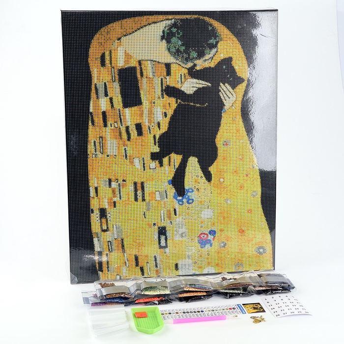 Алмазная мозаика с полным заполнением на холсте с подрамником «Поцелуй с котом», 40 х 50 см — Характеристики