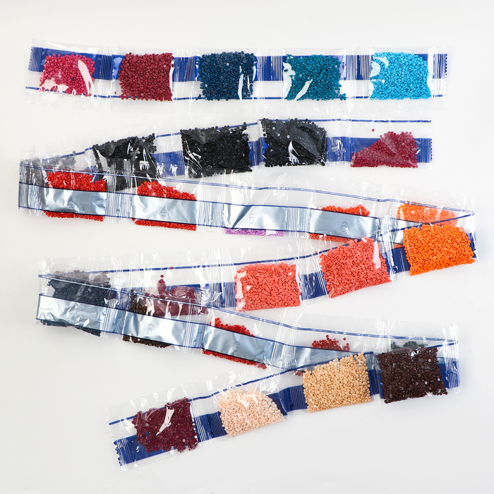 Вам предстоит разложить кристаллики карандашом по пронумерованной схеме. Холст с клеевым покрытием будет надёжно удерживать стразы.