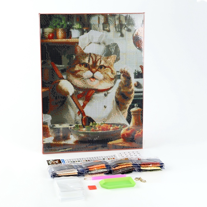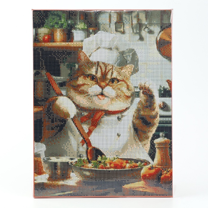 Алмазная мозаика с полным заполнением на холсте с подрамником «Толстенький повар», 30 х 40 см — Характеристики