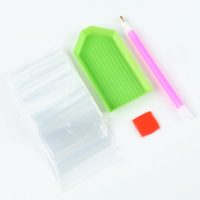 Вам предстоит разложить кристаллики карандашом по пронумерованной схеме. Холст с клеевым покрытием будет надёжно удерживать стразы.