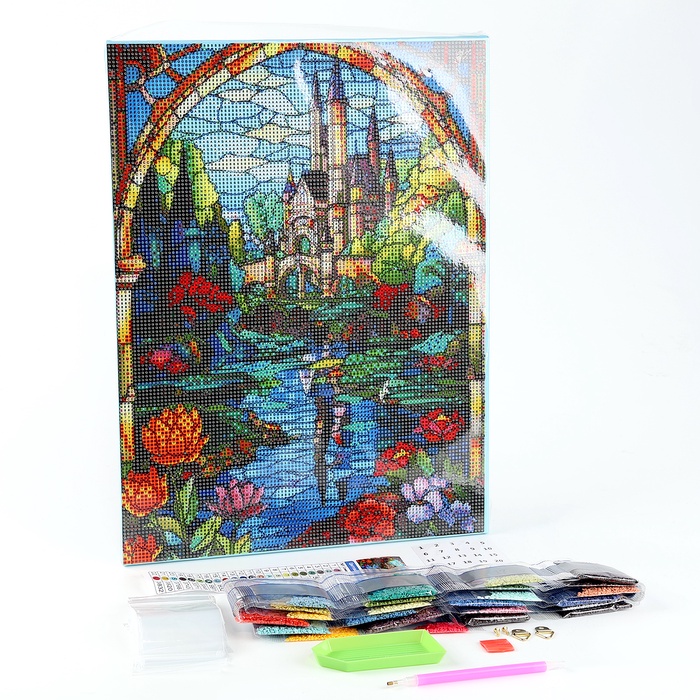 Алмазная мозаика с полным заполнением на холсте с подрамником «Замок», 30 х 40 см — Характеристики