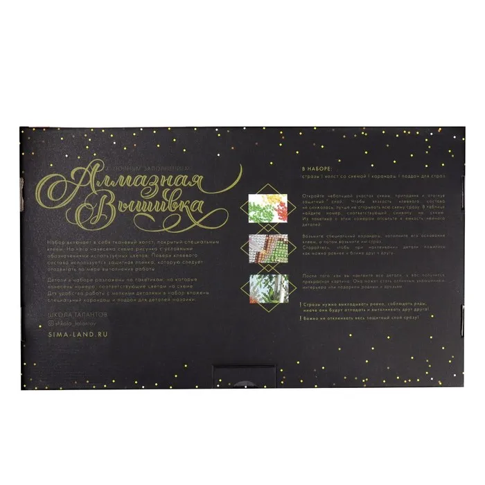 А чтобы вы с лёгкостью могли натянуть готовую картину на подрамник или прикрепить достойную раму, у холста есть специальная дополнительная тканевая область. Сияющая картина будет радовать вас и послужит прекрасным подарком. Она украсит любой интерьер и придаст ему особый шарм. Совершенно особенные вещи, наполненные теплом ваших рук, принесут в дом уют и спокойствие!