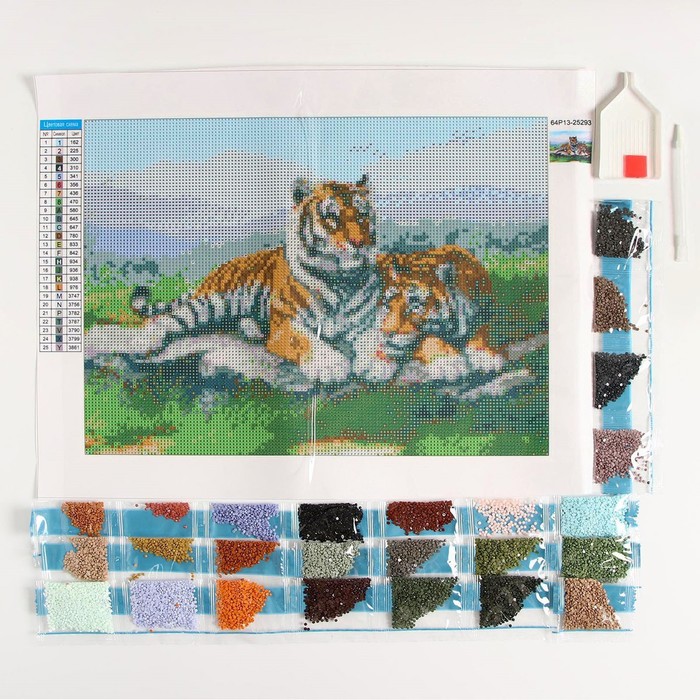 Тканевая основа имеет исключительное клеевое покрытие, которое надёжно удерживает кристаллики. С помощью пинцета вам нужно разложить их по нарисованной схеме с обозначением необходимых цветов, полностью заполнив полотно. Отдельно вас порадует то, что все цвета схемы расположены рядом с рабочей областью холста. А это значит, что схема всегда будет под рукой!