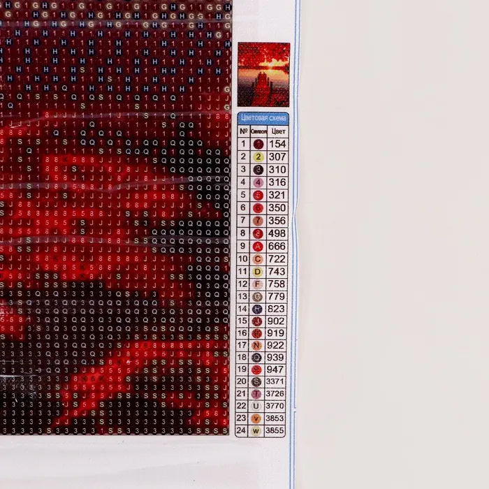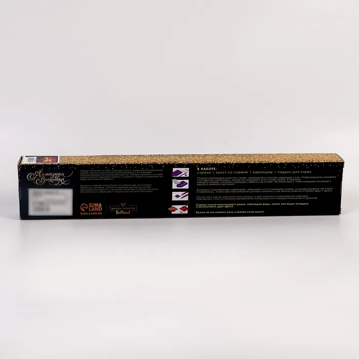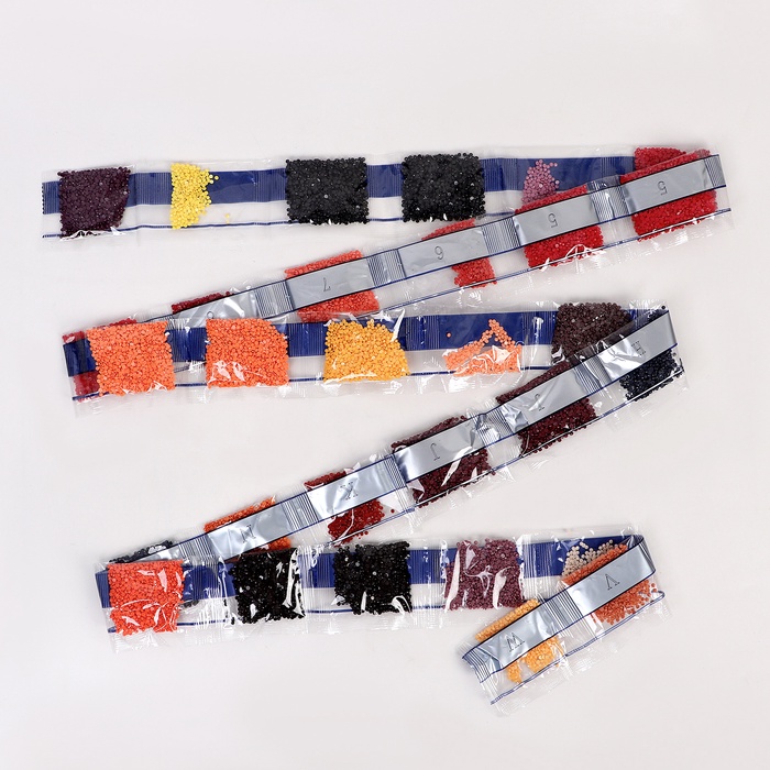 Вам предстоит разложить кристаллики карандашом по пронумерованной схеме. Холст с клеевым покрытием будет надёжно удерживать стразы.