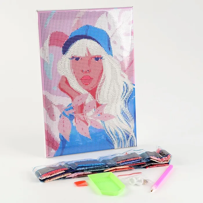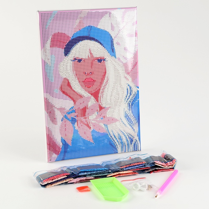 Алмазная мозаика с полным заполнением на подрамнике «Девушка в кепке», 20 × 30 см — Характеристики