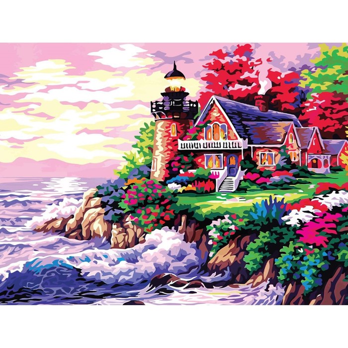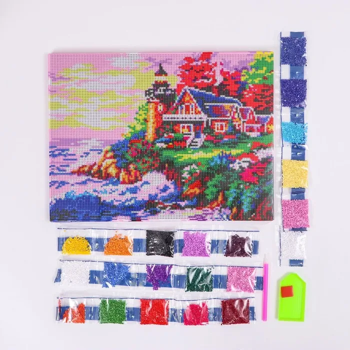 Алмазная мозаика с полным заполнением на подрамнике «Домик у моря», 30 x 40 см — Характеристики
