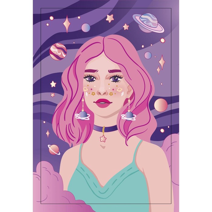 Алмазная мозаика с полным заполнением на подрамнике «Космическая девушка», 20 × 30 см — Характеристики