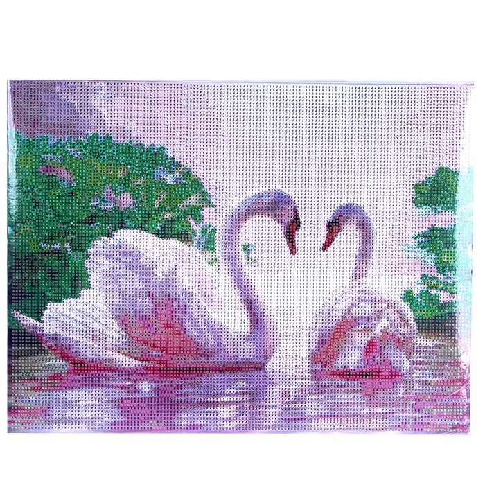 Алмазная мозаика с полным заполнением на подрамнике «Лебеди на озере», 30 х 40 см — Характеристики