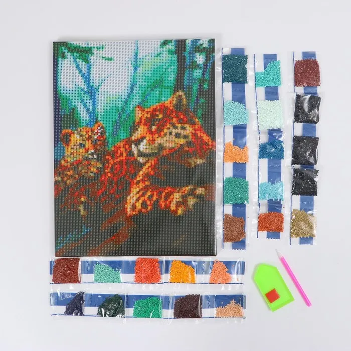 Алмазная мозаика с полным заполнением на подрамнике «Леопарды», 30 x 40 см — Характеристики