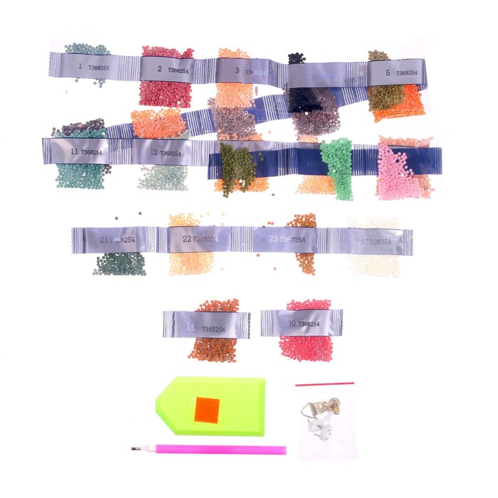 Разложите кристаллики с помощью специального карандаша по указанной схеме, заполните всё полотно. Тканевая основа с точечным клеевым покрытием будет надёжно удерживать стразы. На картине уже обозначены необходимые оттенки. Отдельно вас порадует то, что все цвета схемы расположены рядом с рабочей областью холста. А это значит, что схема всегда будет под рукой!