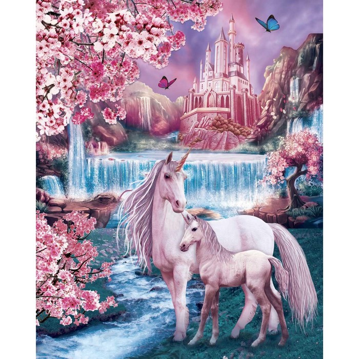Алмазная мозаика с полным заполнением на подрамнике «Сказочные единороги», 40 х 50 см — Характеристики