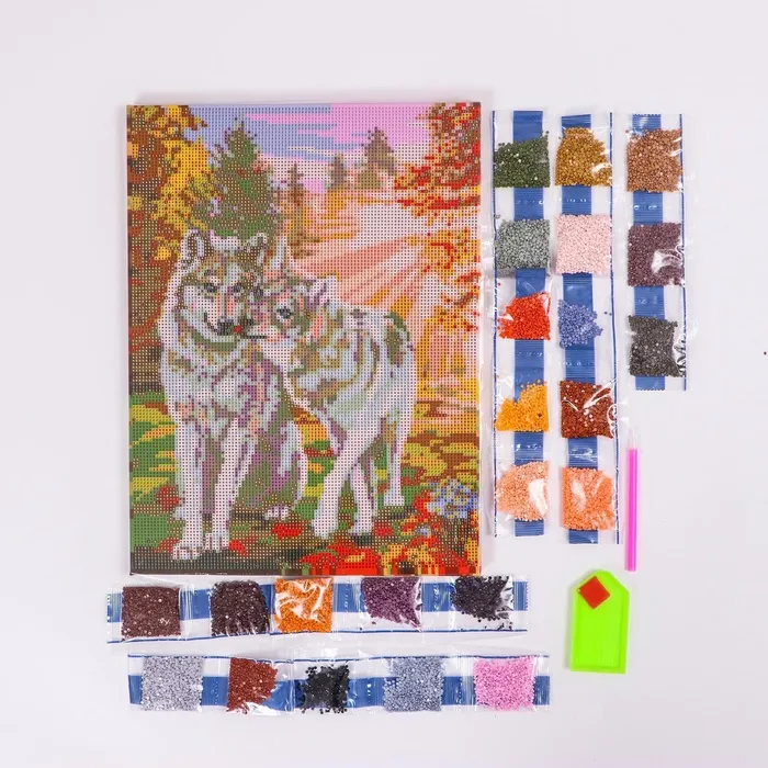 Алмазная мозаика с полным заполнением на подрамнике «Волки», 30 x 40 см — Характеристики