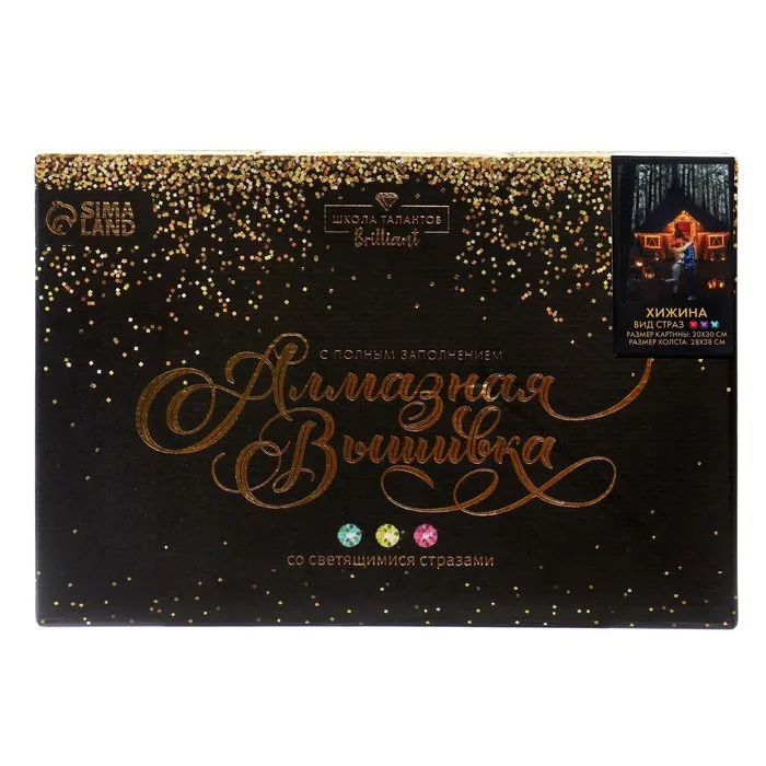 Алмазная мозаика с полным заполнением со светящимися стразами на холсте «Хижина», 20 х 30 см — Характеристики