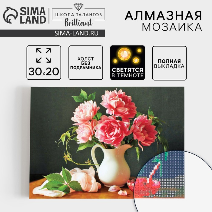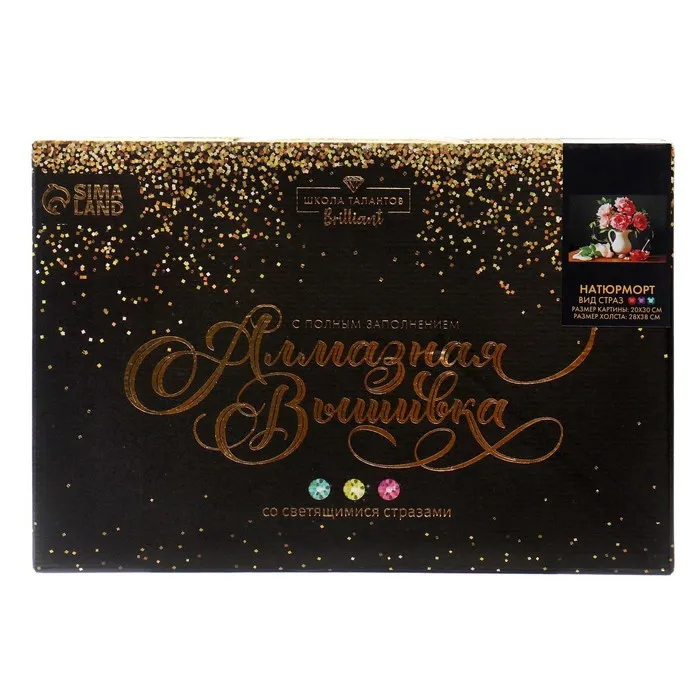 Алмазная мозаика с полным заполнением со светящимися стразами на холсте «Натюрморт», 20 х 30 см — Характеристики