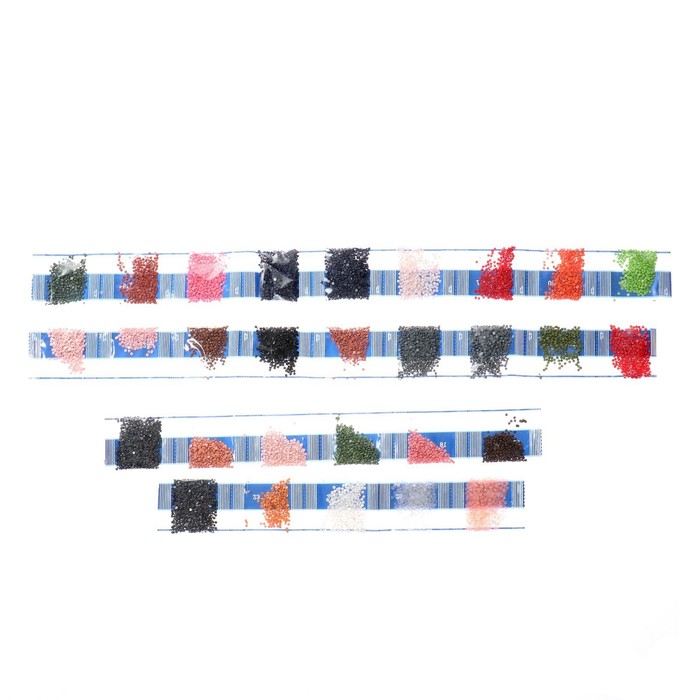 - Разложите кристаллики с помощью карандаша по указанной схеме, заполнив полотно. На картине уже обозначены необходимые оттенки. Холст с клеевым покрытием будет надёжно удерживать стразы.