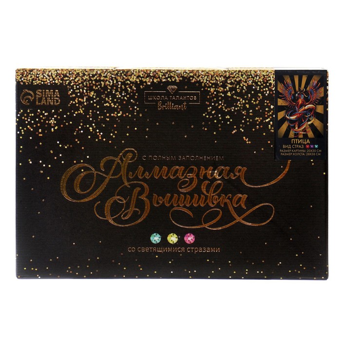 Алмазная мозаика с полным заполнением со светящимися стразами на холсте «Птица», 20 х 30 см — Характеристики